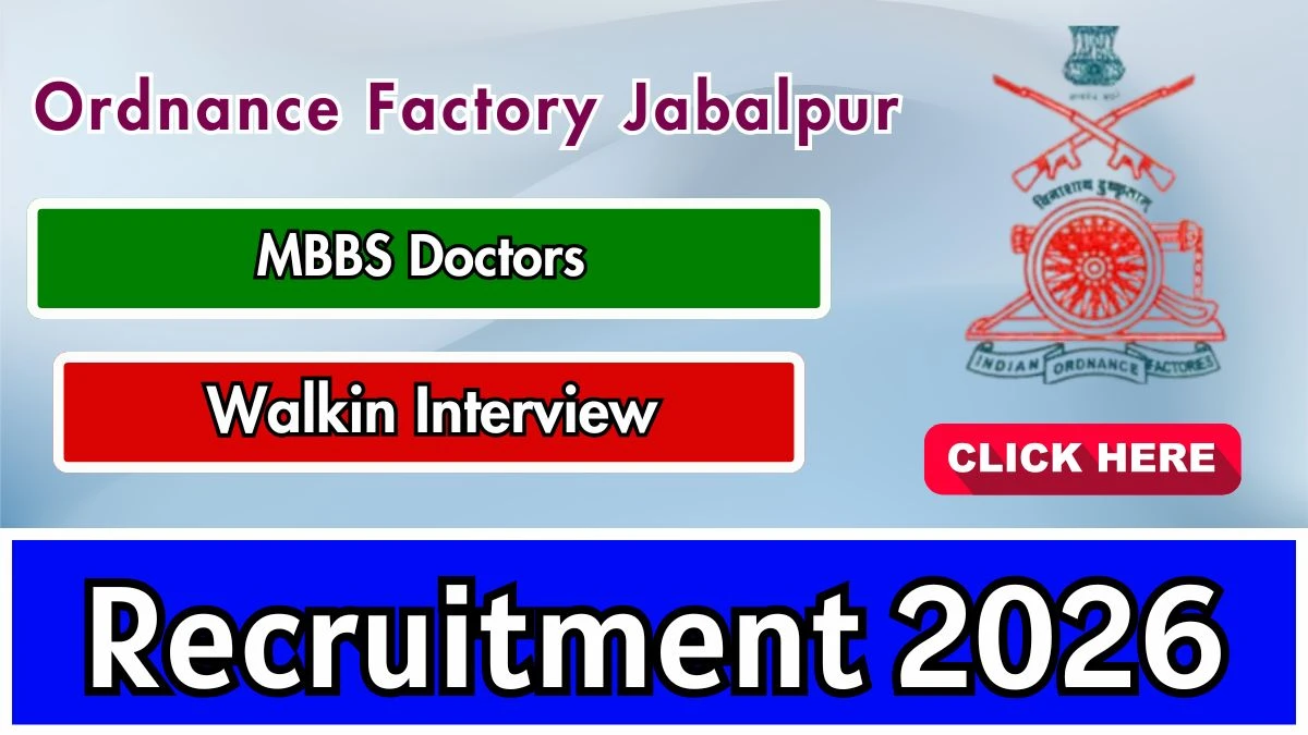 Ordnance Factory Jabalpur has released an official notification for Walk-in Interview for 2 MBBS Doctors Posts. Eligible candidates can attend the Walk-in Interview on at the Ordnance Factory Jabalpur office with original documents and self-attested copies.