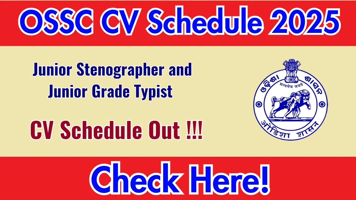 The Odisha Staff Selection Commission has released the OSSC CV Schedule 2025. The OSSC is conducting the Certificate Verification for the post of Junior stenographer and Junior Grade Typist. Get the OSSC CV Schedule 2025 date from the ossc.gov.in Get more details about OSSC CV Schedule 2025 from the mentioned link.