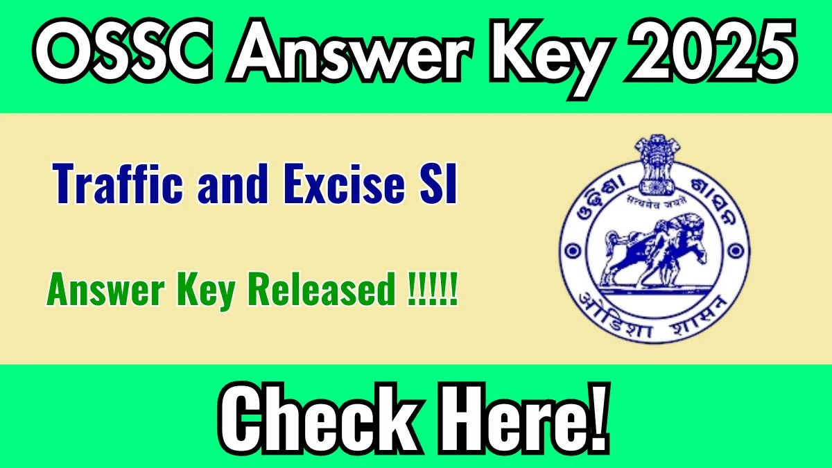 The Odisha Staff Selection Commission (OSSC) has officially published the answer key for the Traffic and Excise SI recruitment exam 2025. Candidates who appeared for the examination can now review the answer key. The recruitment exam for Traffic and Excise SI positions was successfully held from 08-09-2025 to 12-09-2025 Through this recruitment drive, a total of 31 vacancies will be filled. Applicants are advised to carefully review the answer key and submit any challenges within the stipulated timeframe, as no objections will be accepted after the deadline.