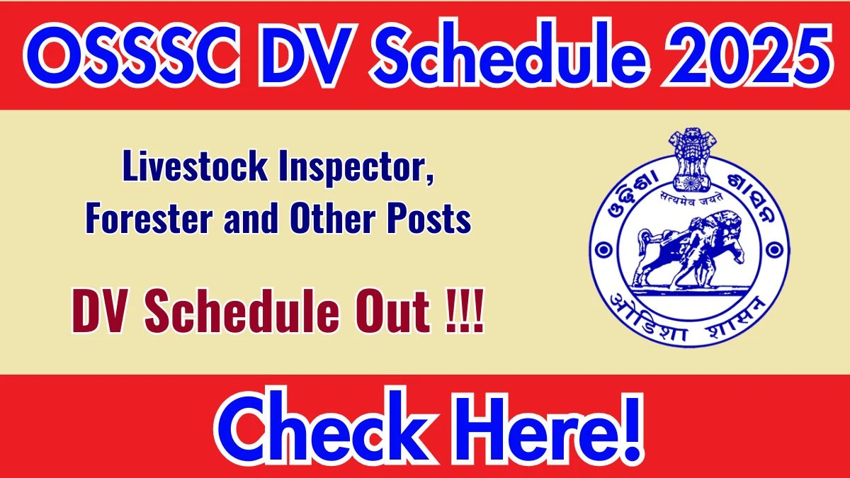 The Odisha Sub-ordinate Staff Selection Commission has released the OSSSC DV Schedule 2025. The OSSSC is conducting the Document Verification for the post of Livestock Inspector, Forester and Other Posts. Get the OSSSC DV Schedule 2025 date from the osssc.gov.in Get more details about OSSSC DV Schedule 2025 from the mentioned link.
