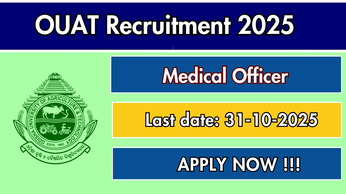 Odisha University of Agriculture and Technology (OUAT) has released an official notification for the recruitment of Not Mentioned Medical Officer Posts. Interested and eligible candidates can apply Offline through the official OUAT website. The last date to submit the application form is 31-10-2025. In this article, you’ll find the OUAT Medical Officer Posts recruitment details, including eligibility criteria, age limit, salary structure, selection process, application steps, and direct links to the official notification and Offline application form.