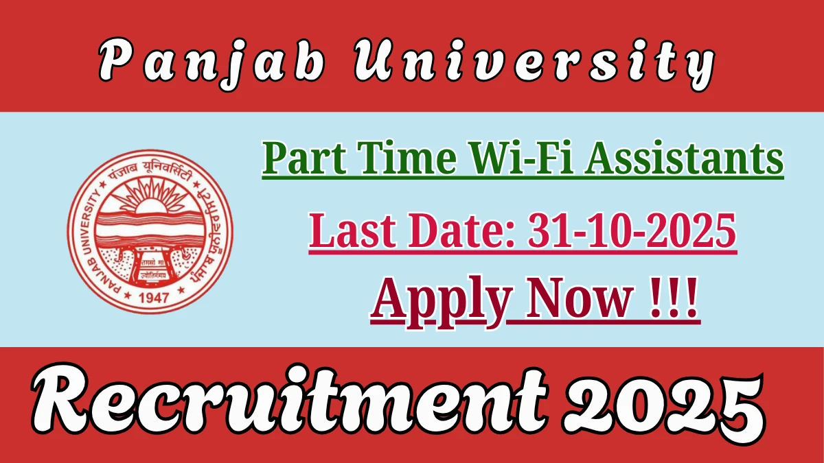 Panjab University has released an official notification for the recruitment of Part Time Wi-Fi Assistants Posts. Interested and eligible candidates can apply Offline through the official Panjab University website. The last date to submit the application form is 31-10-2025. In this article, you’ll find the Panjab University Part Time Wi-Fi Assistants Posts recruitment details, including eligibility criteria, age limit, salary structure, selection process, application steps, and direct links to the official notification and Offline application form.