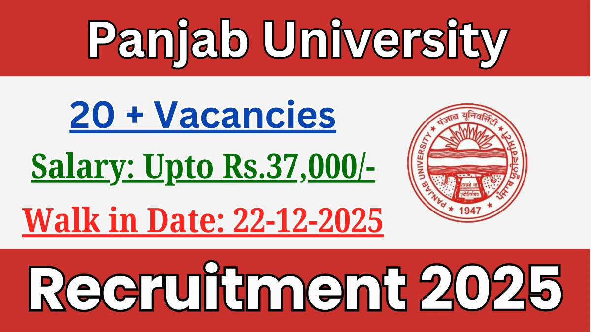 Panjab University Recruitment 2025 for 21 posts of JRF, Project Assistant and More. Candidates with Any Graduate, B.Tech/B.E, Any Post Graduate Can attend the walkin. The Walk-in on 22-12-2025. For detailed information please visit Panjab University official website, puchd.ac.in.