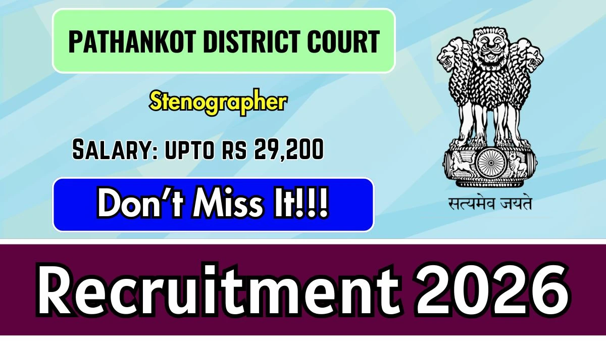 Pathankot District Court has released an official notification for the recruitment of 09 Stenographer Posts. Interested and eligible candidates can apply Offline through the official Pathankot District Court website. The last date to submit the application form is 25-02-2026. In this article, you’ll find the Pathankot District Court Stenographer Posts recruitment details, including eligibility criteria, age limit, salary structure, selection process, application steps, and direct links to the official notification and Offline application form.