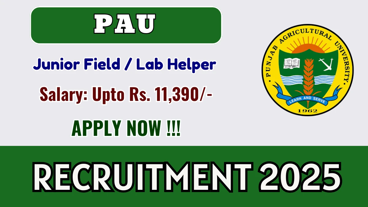 Punjab Agricultural University (PAU) has released an official notification for the recruitment of Junior Field / Lab Helper Posts. Interested and eligible candidates can apply Offline through the official PAU website. The last date to submit the application form is 04-11-2025. In this article, you’ll find the PAU Junior Field / Lab Helper Posts recruitment details, including eligibility criteria, age limit, salary structure, selection process, application steps, and direct links to the official notification and Offline application form.