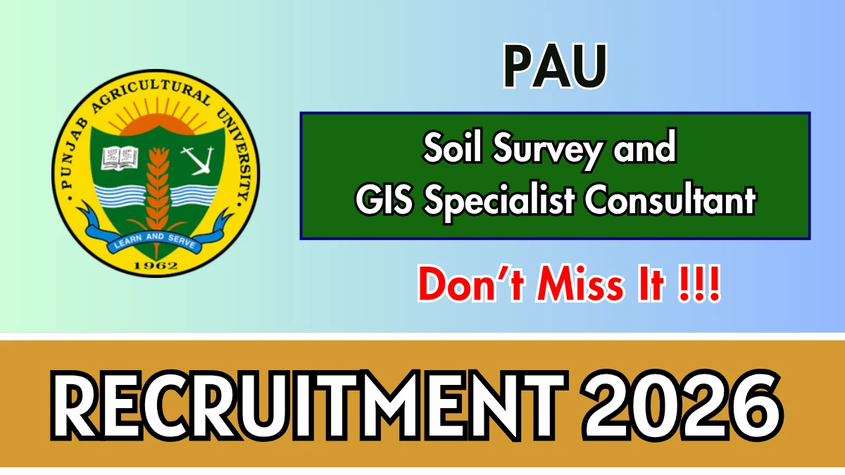 Punjab Agricultural University (PAU) Notification 2026 has been released on the official website for the recruitment of 1 Soil Survey and GIS Specialist Consultant post. A total of 1 vacancy has been announced under PAU Recruitment 2026 for the Soil Survey and GIS Specialist Consultant position.