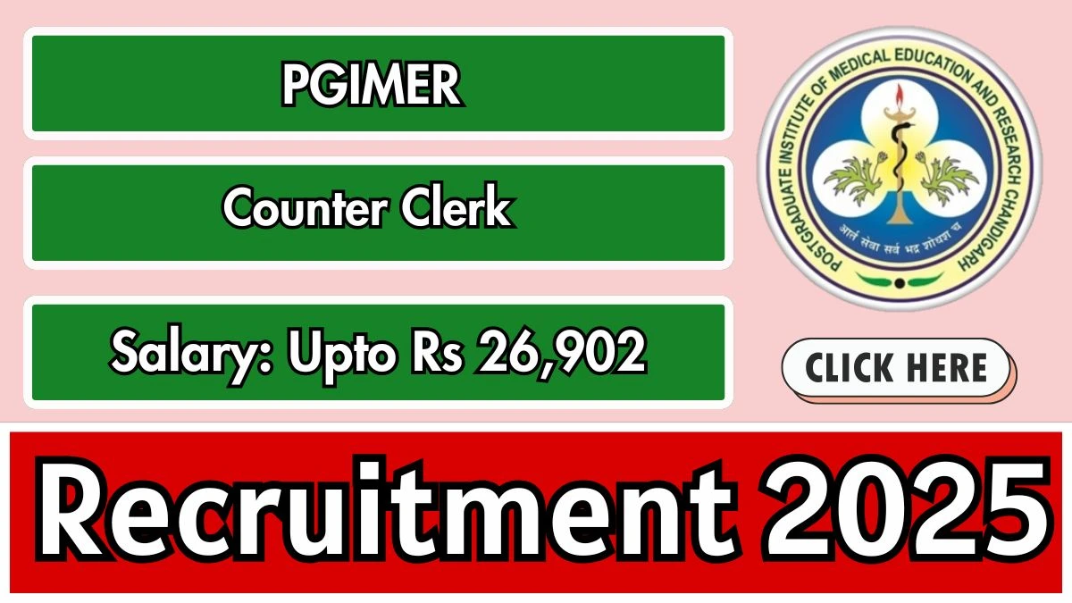 Postgraduate Institute of Medical Education and Research (PGIMER) Recruitment 2025 for 01 posts of Counter Clerk. Candidates with B.Com Can attend the walkin. The Walk-in interview on 24-12-2025. For detailed information please visit PGIMER official website, pgimer.edu.in.