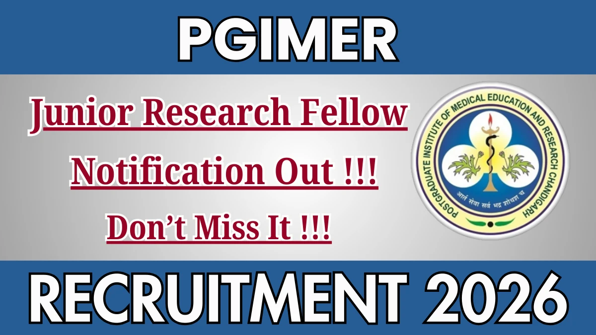 Postgraduate Institute of Medical Education and Research (PGIMER) has released an official notification for the recruitment of 01 Junior Research Fellow Posts. Interested and eligible candidates can apply Online through the official PGIMER website. The last date to submit the application form is 10-02-2026. In this article, you’ll find the PGIMER Junior Research Fellow Posts recruitment details, including eligibility criteria, age limit, salary structure, selection process, application steps, and direct links to the official notification and Online application form.