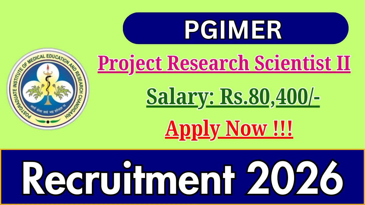 Postgraduate Institute of Medical Education and Research (PGIMER) has released an official notification for the recruitment of 01 Project Research Scientist II Posts. Interested and eligible candidates can apply Offline through the official PGIMER website. The last date to submit the application form is 27-01-2026. In this article, you’ll find the PGIMER Project Research Scientist II Posts recruitment details, including eligibility criteria, age limit, salary structure, selection process, application steps, and direct links to the official notification and Offline application form.