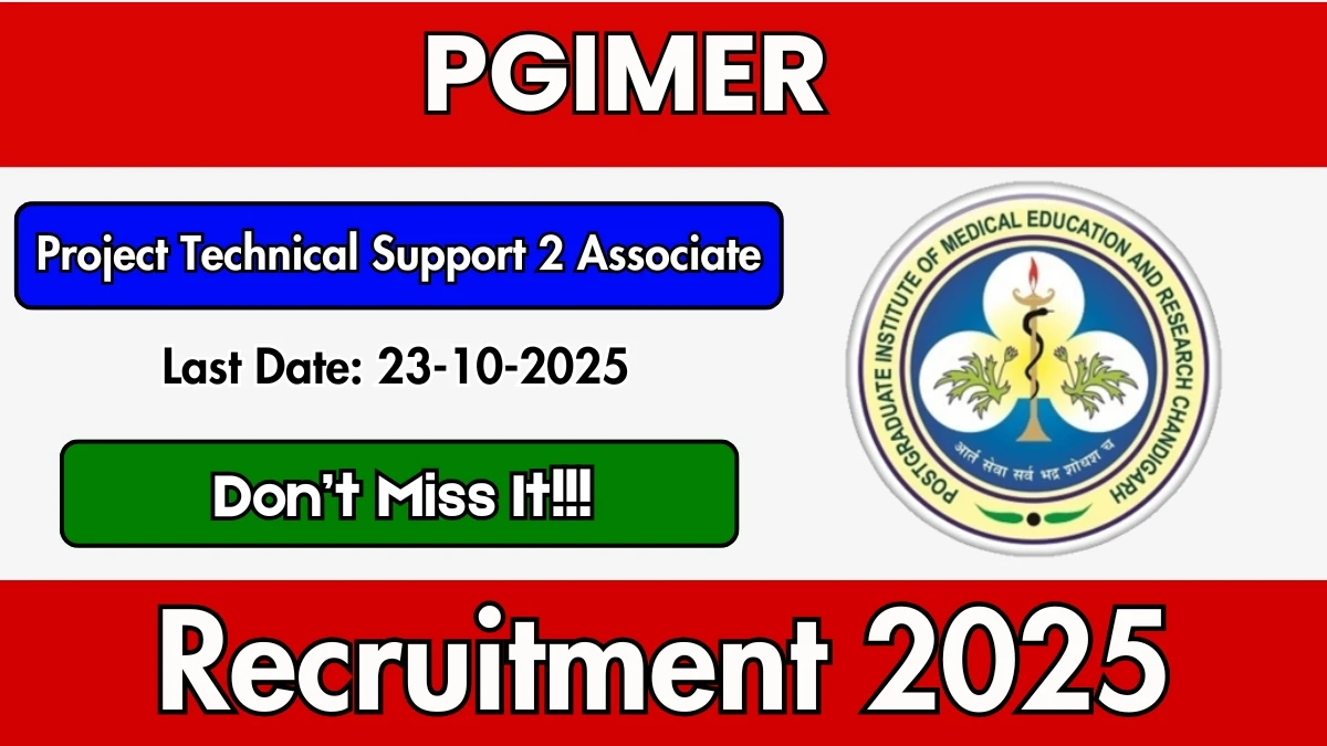 Post Graduate Institute of Medical Education and Research (PGIMER) has released an official notification for the recruitment of 01 Project Technical Support 2 Posts. Interested and eligible candidates can apply Offline through the official PGIMER website. The last date to submit the application form is 23-10-2025. In this article, you’ll find the PGIMER Project Technical Support 2 Posts recruitment details, including eligibility criteria, age limit, salary structure, selection process, application steps, and direct links to the official notification and Offline application form.