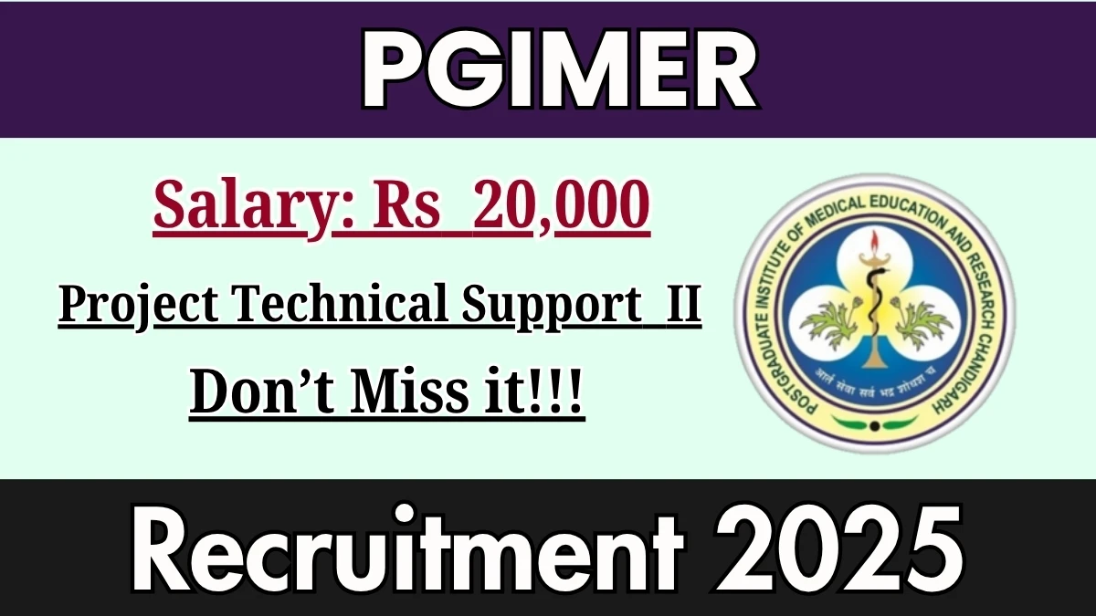 Postgraduate Institute of Medical Education and Research (PGIMER) has released an official notification for the recruitment of 01 Project Technical Support II Posts. Interested and eligible candidates can apply Online through the official PGIMER website. The last date to submit the application form is 18-10-2025. In this article, you’ll find the PGIMER Project Technical Support II Posts recruitment details, including eligibility criteria, age limit, salary structure, selection process, application steps, and direct links to the official notification and Online application form.