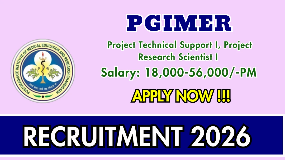 Postgraduate Institute of Medical Education and Research (PGIMER) has released an official notification for the recruitment of 2 Project Technical Support I and Project Research Scientist I Posts. Interested and eligible candidates can apply by sending their application via Email. The last date to send the application email is 09-03-2026.