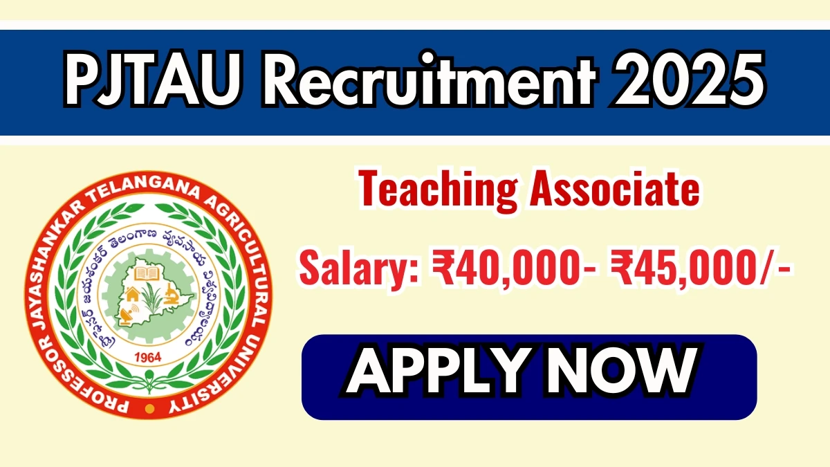 Professor Jayashankar Telangana Agricultural University (PJTAU) Recruitment 2025 for 01 posts of Teaching Associate. Candidates with M.Sc, M.Phil/Ph.D Can attend the walkin. The Walk-in starts on 10-10-2025. For detailed information please visit PJTAU official website, pjtau.edu.in.