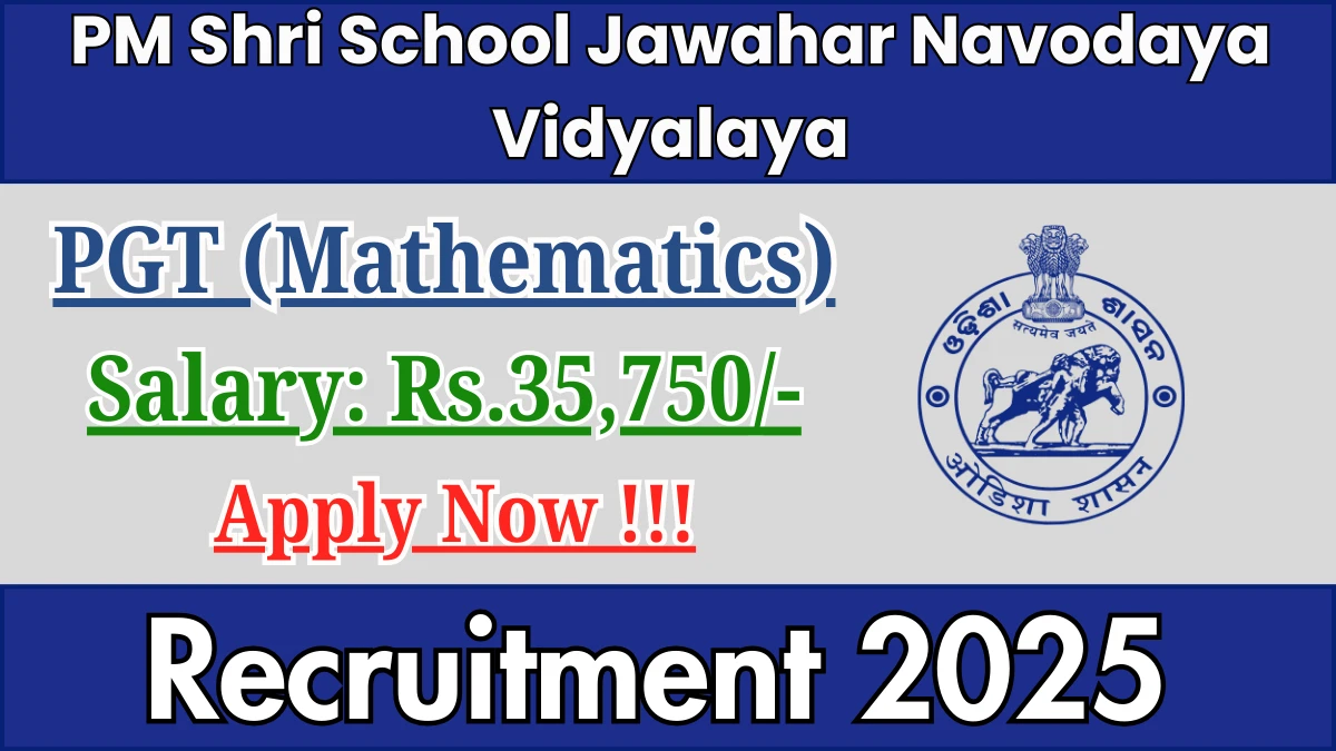PM Shri School Jawahar Navodaya Vidyalaya PGT (Mathematics) Recruitment 2025 Vacancy Details