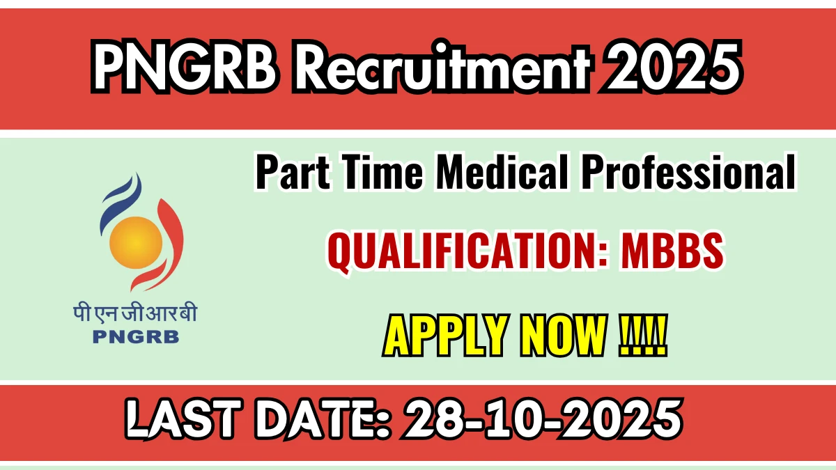 Petroleum and Natural Gas Regulatory Board (PNGRB) has released an official notification for the recruitment of 01 Part Time Medical Professional Posts. Interested and eligible candidates can apply Offline through the official PNGRB website. The last date to submit the application form is 28-10-2025. In this article, you’ll find the PNGRB Part Time Medical Professional Posts recruitment details, including eligibility criteria, age limit, salary structure, selection process, application steps, and direct links to the official notification and Offline application form.