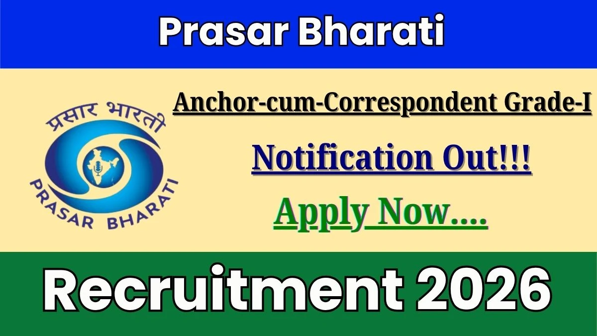 Candidates who meet the eligibility criteria can apply online for the Prasar Bharati Anchor-cum-Correspondent Grade-I Recruitment 2026.