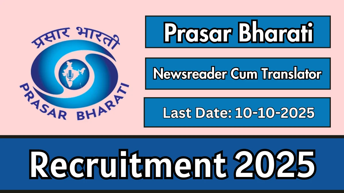 The Prasar Bharati Newsreader Cum Translator Recruitment 2025 Notification PDF has been released on 22-09-2025 at prasarbharati.gov.in. Check the complete job details, vacancy, age limit, application fee, selection process and how to apply from the article. You can Check all Latest Sarkari Result Updates of All Central Government Jobs and State Government Jobs.