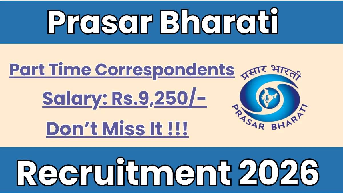 Prasar Bharati has released an official notification for the recruitment of 04 Part Time Correspondents Posts. Interested and eligible candidates can apply Offline through the official Prasar Bharati website. In this article, you’ll find the Prasar Bharati Part Time Correspondents Posts recruitment details, including eligibility criteria, age limit, salary structure, selection process, application steps, and direct links to the official notification and Offline application form.