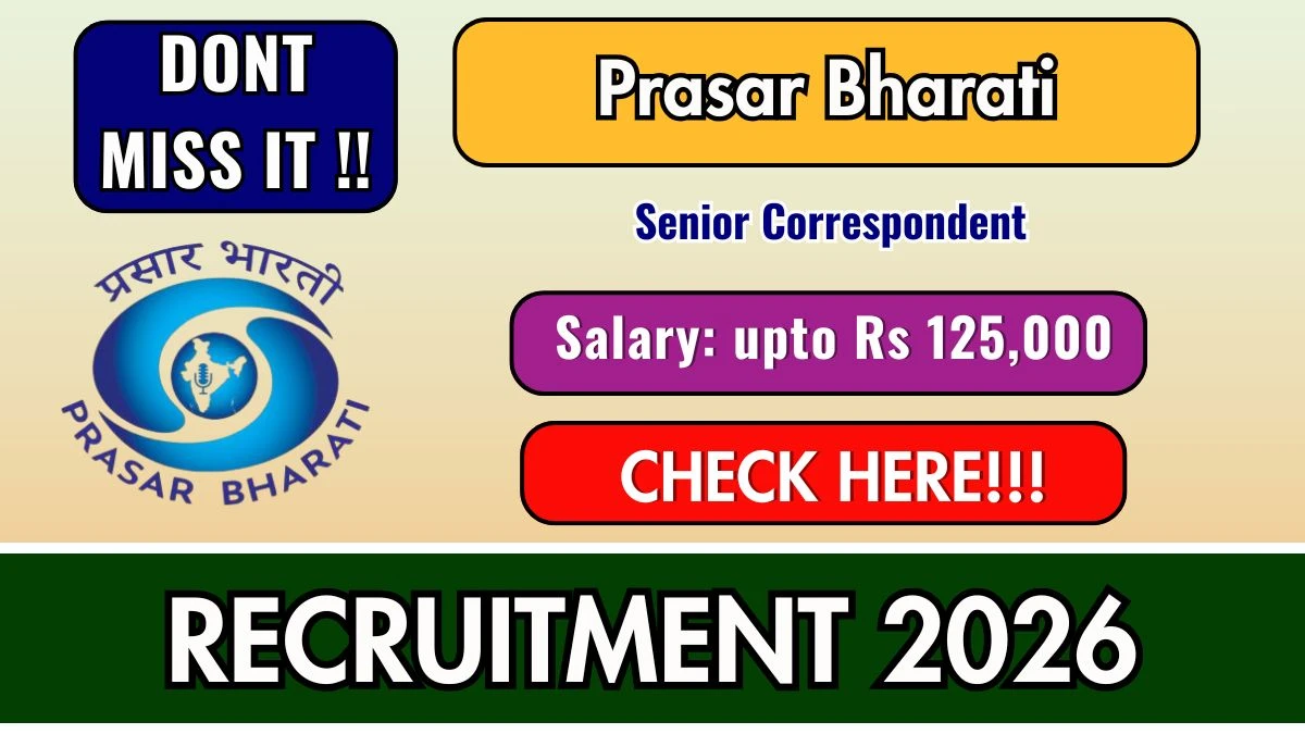 Prasar Bharati has released an official notification for the recruitment of 04 Senior Correspondent Posts. Interested and eligible candidates can apply Online through the official Prasar Bharati website. The last date to submit the application form is 03-03-2026. In this article, you’ll find the Prasar Bharati Senior Correspondent Posts recruitment details, including eligibility criteria, age limit, salary structure, selection process, application steps, and direct links to the official notification and Online application form.