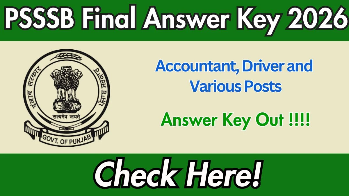 The Punjab Subordinate Service Selection Board (PSSSB) has released the Final Answer Key 2026 for Work Mistry, Accountant, Carpenter, Coupon Clerk, Plumber and Driver posts. Candidates who appeared for the examinations can now check and download the final answer keys from the official website sssb.punjab.gov.in.