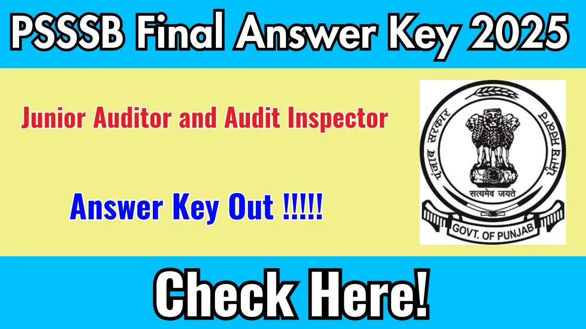 The Punjab Subordinate Service Selection Board (PSSSB) has released the Junior Auditor and Audit Inspector Final Answer Key 2025. Candidates who appeared for the Junior Auditor and Audit Inspector examination held on 30.11.2025 can now check and download the final answer key from the official website sssb.punjab.gov.in.