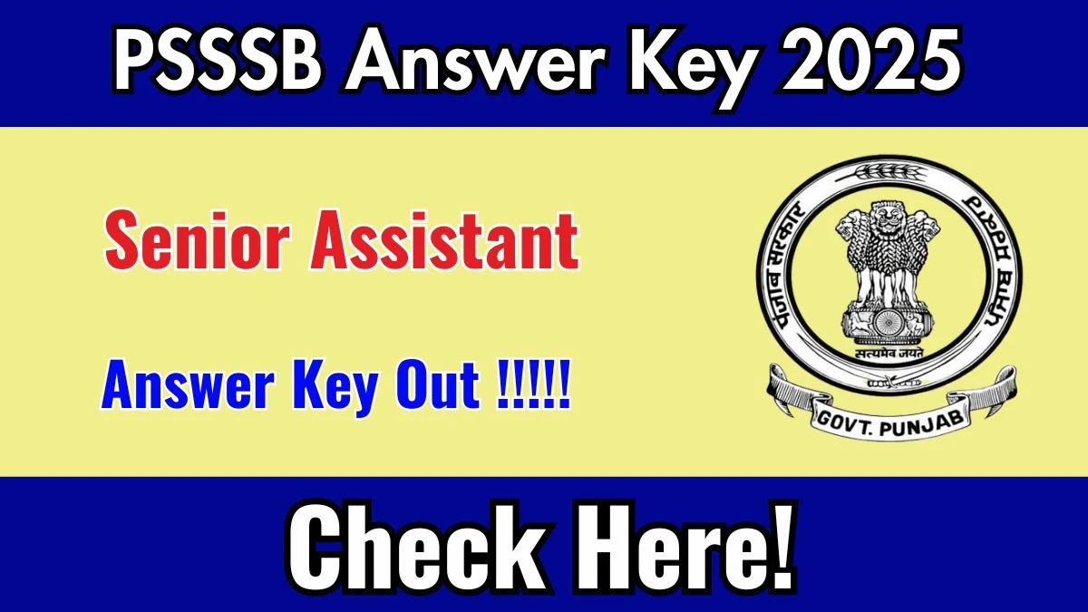 The Punjab Subordinate Service Selection Board (PSSSB) has released the Senior Assistant Answer Key 2025. Candidates who appeared for the Senior Assistant examination held on 21-12-2025 can now check and download the provisional answer key from the official website sssb.punjab.gov.in.