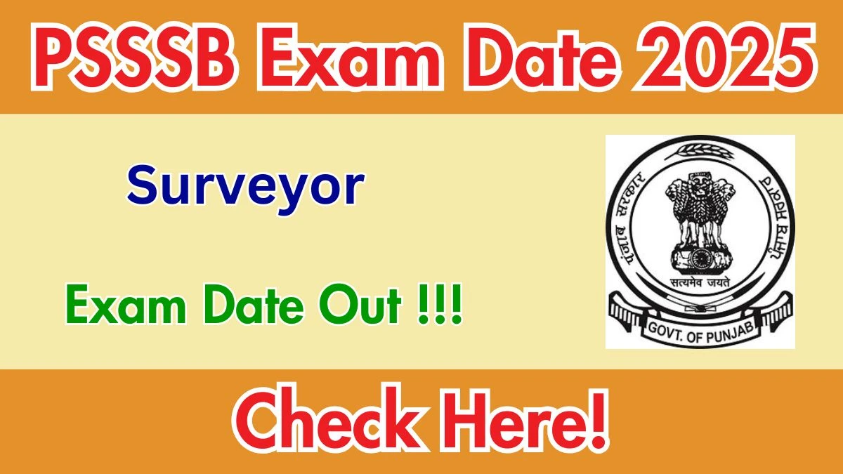 PSSSB Exam Date 2025: The Punjab Subordinate Service Selection Board has officially released the exam date for the Surveyor recruitment. Candidates who have applied for the Surveyor posts can check the complete exam schedule below. The examination is scheduled to be held on 20 December 2025. All eligible candidates are advised to download their admit cards and prepare accordingly.