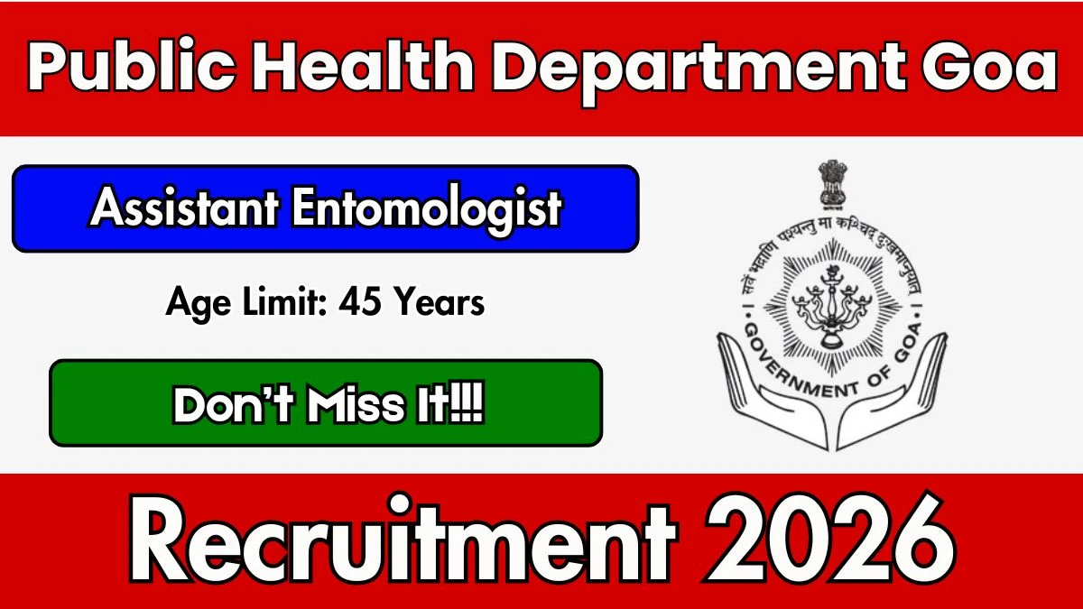 Public Health Department Goa has released an official notification for the recruitment of 01 Assistant Entomologist Posts. Interested and eligible candidates can apply Online through the official Public Health Department Goa website. The last date to submit the application form is 23-01-2026. In this article, you’ll find the Public Health Department Goa Assistant Entomologist Posts recruitment details, including eligibility criteria, age limit, salary structure, selection process, application steps, and direct links to the official notification and Online application form.