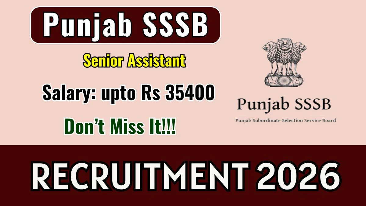 Punjab Subordinate Services Selection Board (Punjab SSSB) Recruitment 2026: Punjab Subordinate Services Selection Board has released the official notification for Senior Assistant posts, inviting applications from eligible candidates in Punjab. This recruitment provides an excellent opportunity for candidates seeking stable and well-paid government jobs.