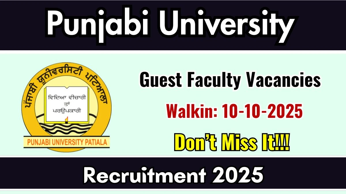 Punjabi University Recruitment 2025 for 01 posts of Guest Faculty. Candidates with Masters Degree, M.Ed Can attend the walkin. The Walk-in interview on 10-10-2025. For detailed information please visit Punjabi University official website, punjabiuniversity.ac.in.