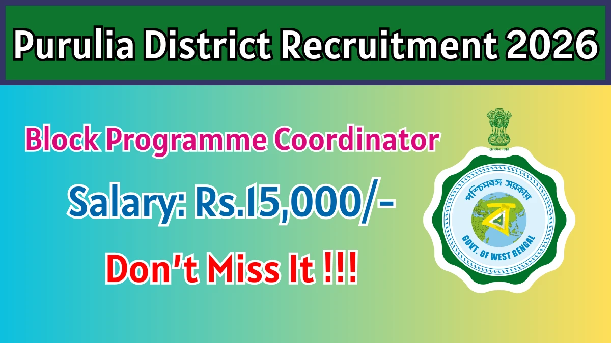 Purulia District has released an official notification for the recruitment of 01 Block Programme Coordinator Posts. Interested and eligible candidates can apply Offline through the official Purulia District website. The last date to submit the application form is 26-02-2026. In this article, you’ll find the Purulia District Block Programme Coordinator Posts recruitment details, including eligibility criteria, age limit, salary structure, selection process, application steps, and direct links to the official notification and Offline application form.