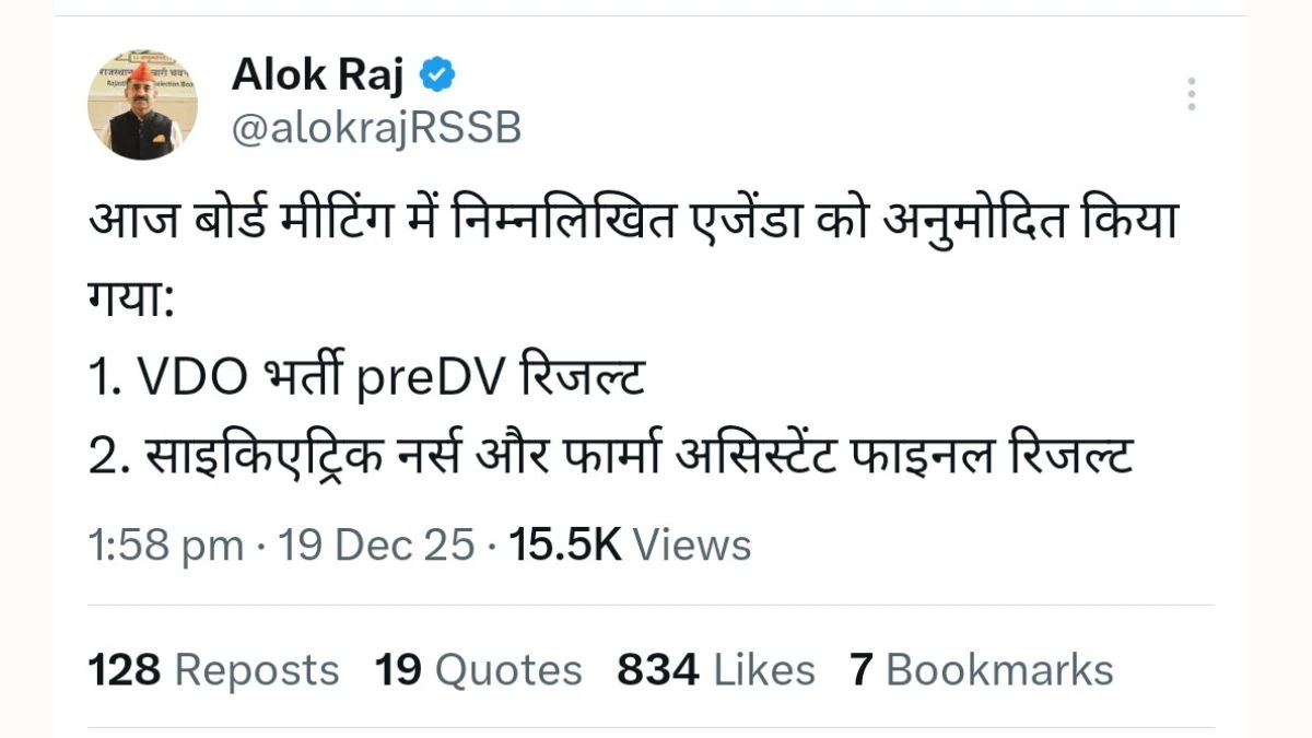 The Rajasthan Staff Selection Board (RSSB) will release the cut-off marks for VDO Recruitment 2025 on 19 December 2025. Candidates who appeared in the written examination will be able to check their category-wise qualifying marks through the official portal. The cut-off will be determined based on factors such as the total number of vacancies, number of applicants, exam difficulty level, and reservation policy.