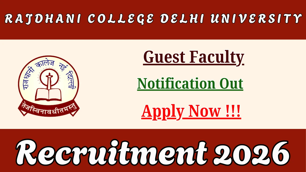 Rajdhani College Delhi University has released an official notification for the recruitment of 1 Guest Faculty Posts. Interested and eligible candidates can apply Offline by sending the application form to the official address. The last date to submit the application is 05-03-2026.