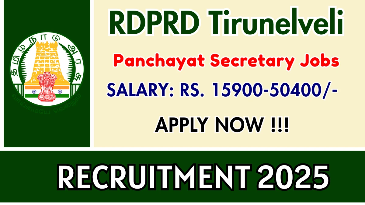 The Rural Development and Panchayat Raj Department Tirunelveli (RDPRD Tirunelveli) Recruitment 2025 for 24 posts of Panchayat Secretary. Candidates with 10TH Can Apply Offline. The Offline application opens on 10-10-2025, and closes on 09-11-2025. The candidate shall apply Offline through RDPRD Tirunelveli website, tirunelveli.nic.in.