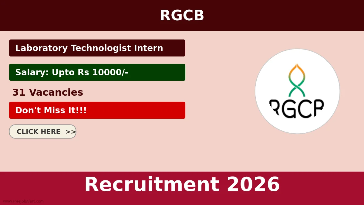 Rajiv Gandhi Centre for Biotechnology (RGCB) has released an official notification for the recruitment of 31 Laboratory Technologist Intern Posts. Interested and eligible candidates can apply Online through the official RGCB website. The last date to submit the application form is 15-03-2026.