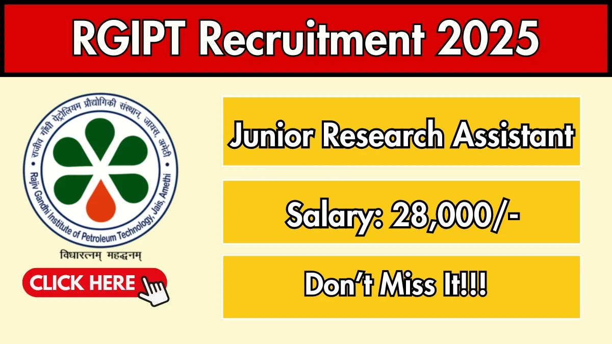 Rajiv Gandhi Institute of Petroleum Technology (RGIPT) has released an official notification for the recruitment of 01 Junior Research Assistant Posts. Interested and eligible candidates can apply Offline through the official RGIPT website. The last date to submit the application form is 29-10-2025. In this article, you’ll find the RGIPT Junior Research Assistant Posts recruitment details, including eligibility criteria, age limit, salary structure, selection process, application steps, and direct links to the official notification and Offline application form.