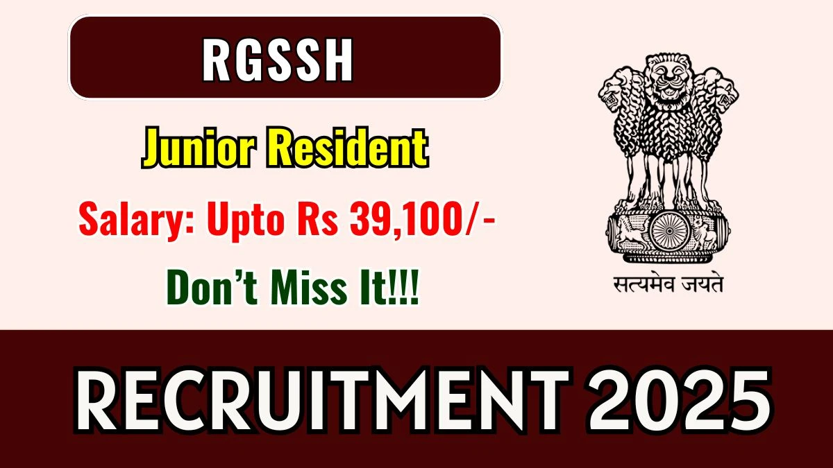 RGSSH Junior Resident Recruitment 2025 Vacancy Details |