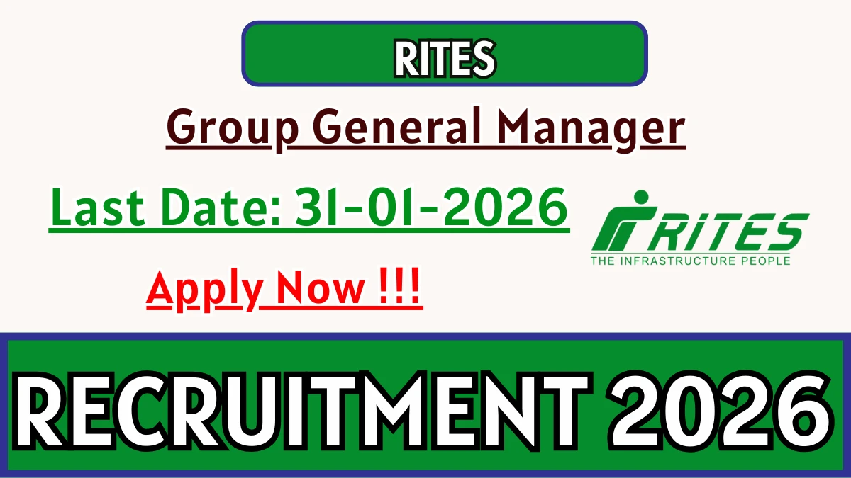 Rail India Technical and Economic Service (RITES) has released an official notification for the recruitment of 02 Group General Manager Posts. Interested and eligible candidates can apply Offline through the official RITES website. The last date to submit the application form is 31-01-2026. In this article, you’ll find the RITES Group General Manager Posts recruitment details, including eligibility criteria, age limit, salary structure, selection process, application steps, and direct links to the official notification and Offline application form.