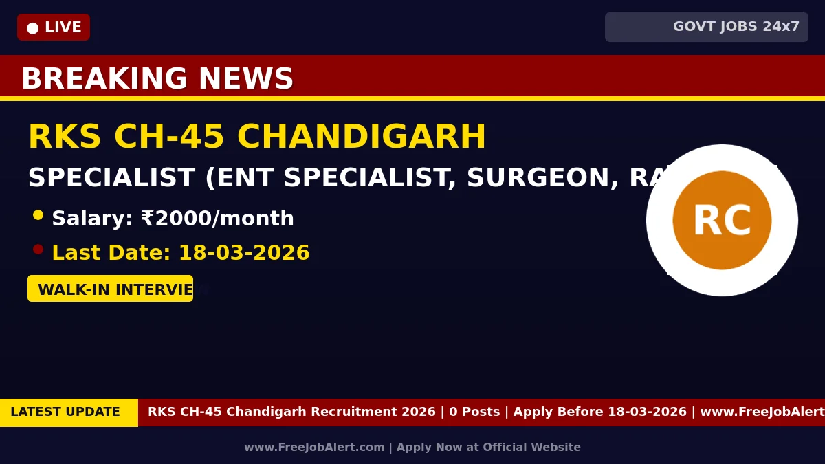 Rogi Kalyan Samiti, UCHC-45 Chandigarh (RKS CH-45 Chandigarh) has released an official notification for Walk-in Interview for Specialist Doctors Posts. Eligible candidates can attend the Walk-in Interview on at the RKS CH-45 Chandigarh office with original documents and self-attested copies.