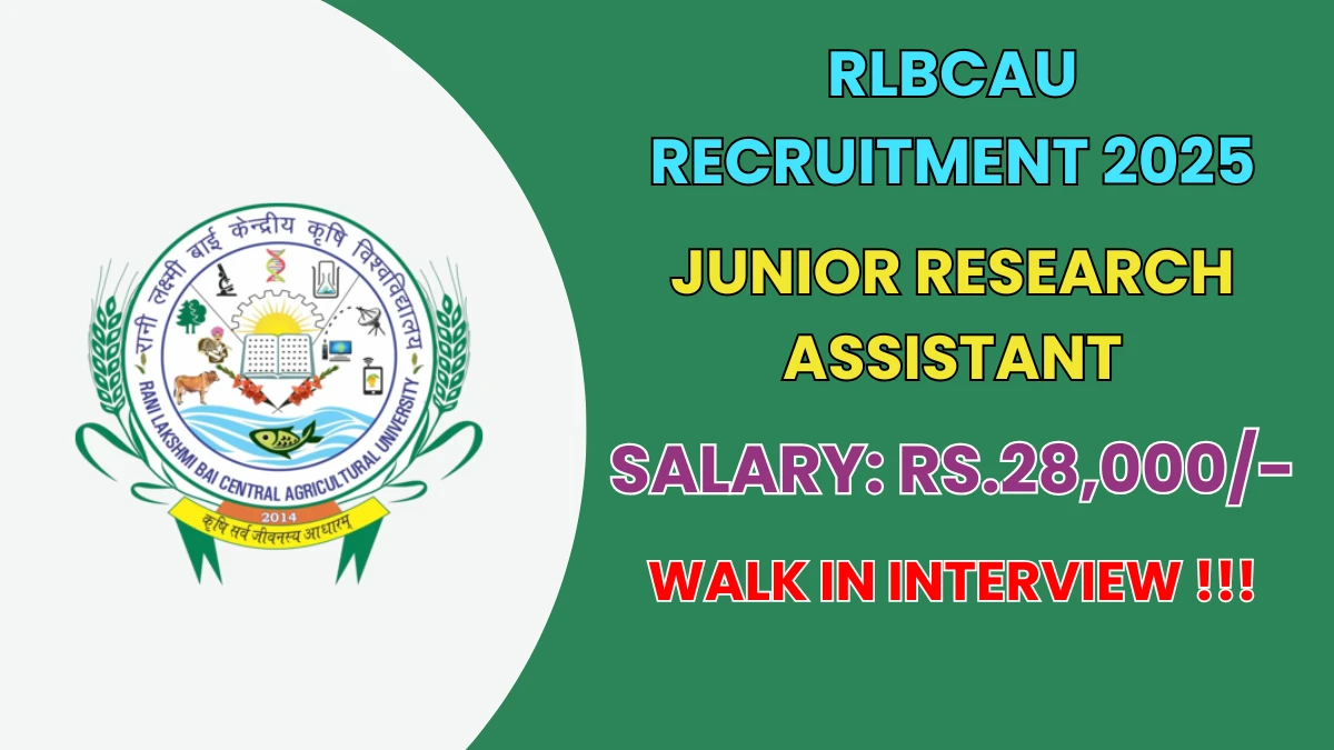 Rani Lakshmi Bai Central Agricultural University (RLBCAU) Recruitment 2025 for 03 posts of Junior Research Assistant. Candidates with Any Graduate, B.Sc, Any Post Graduate, M.Sc Can attend the walkin. The Walk-in starts from 28-10-2025, and ends on 04-11-2025. For detailed information please visit RLBCAU official website, rlbcau.ac.in.