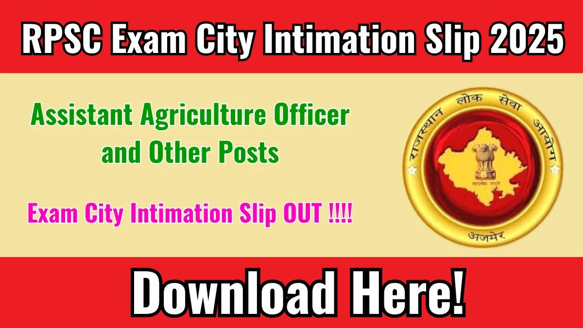 Download RPSC Assistant Agriculture Officer, Statistical Officer and Other Posts Exam City Intimation Slip 2025 now! Get direct link, step-by-step process, and important exam details. Visit rpsc.rajasthan.gov.in to download.