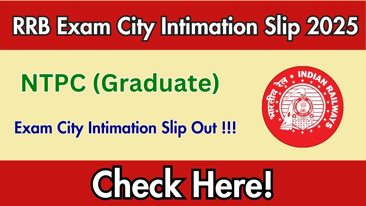 RRB NTPC (Graduate) Exam City Intimation Slip 2025 is Out! On 03 October 2025 Railway Recruitment Board has officially released the RRB NTPC (Graduate) Exam City Intimation Slip 2025. Candidates who have applied for the NTPC (Graduate) Exam can now download their Exam City Intimation Slip from the official website indianrailways.gov.in.