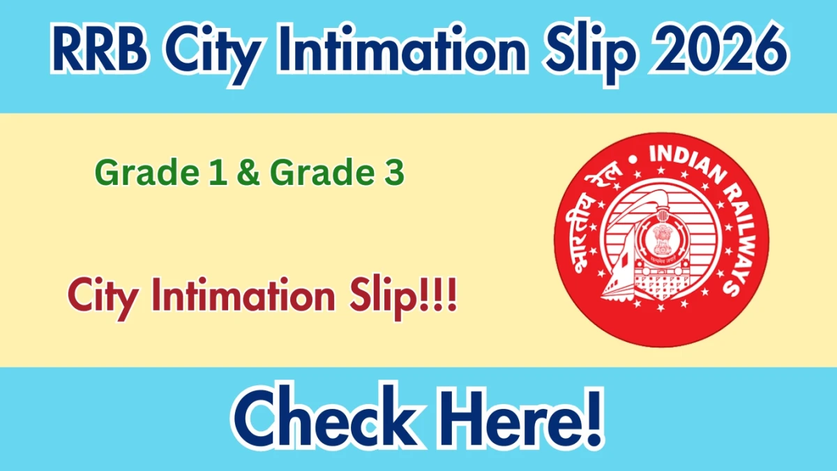 RRB has officially released the City Intimation Slip 2026 out today for Technician Grade 1 Signal & Grade 3 examination (CEN 02/2025). Candidates appearing for RRB Technician exam can now download their exam city slip from the official website rrbcdg.gov.in or regional RRB portals. The city intimation slip contains crucial information about exam city, date, shift timing, and reporting time. This document helps candidates plan their travel and accommodation arrangements before the admit card release. In this article, we provide the direct download link, step-by-step instructions, and all important details about RRB Technician City Intimation Slip 2026.
