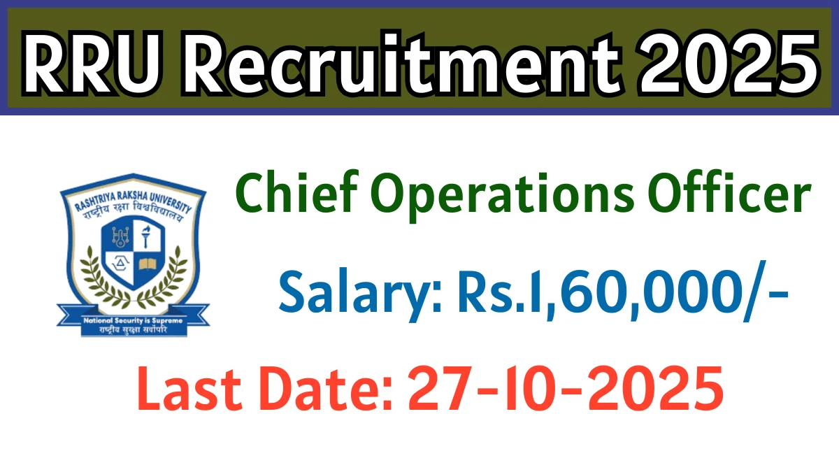 Rashtriya Raksha University (RRU) has released an official notification for the recruitment of Chief Operations Officer Posts. Interested and eligible candidates can apply Offline through the official RRU website. The last date to submit the application form is 27-10-2025. In this article, you’ll find the RRU Chief Operations Officer Posts recruitment details, including eligibility criteria, age limit, salary structure, selection process, application steps, and direct links to the official notification and Offline application form.