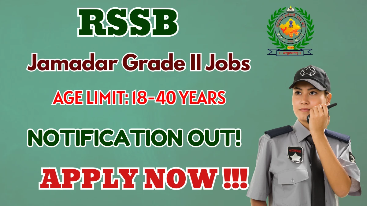 Rajasthan Staff Selection Board (RSSB) has released an official notification for the recruitment of 72 Jamadar Grade II Posts. Interested and eligible candidates can apply Online through the official RSSB website. The last date to submit the application form is 15-11-2025. In this article, you’ll find the RSSB Jamadar Grade II Posts recruitment details, including eligibility criteria, age limit, salary structure, selection process, application steps, and direct links to the official notification and Online application form.
