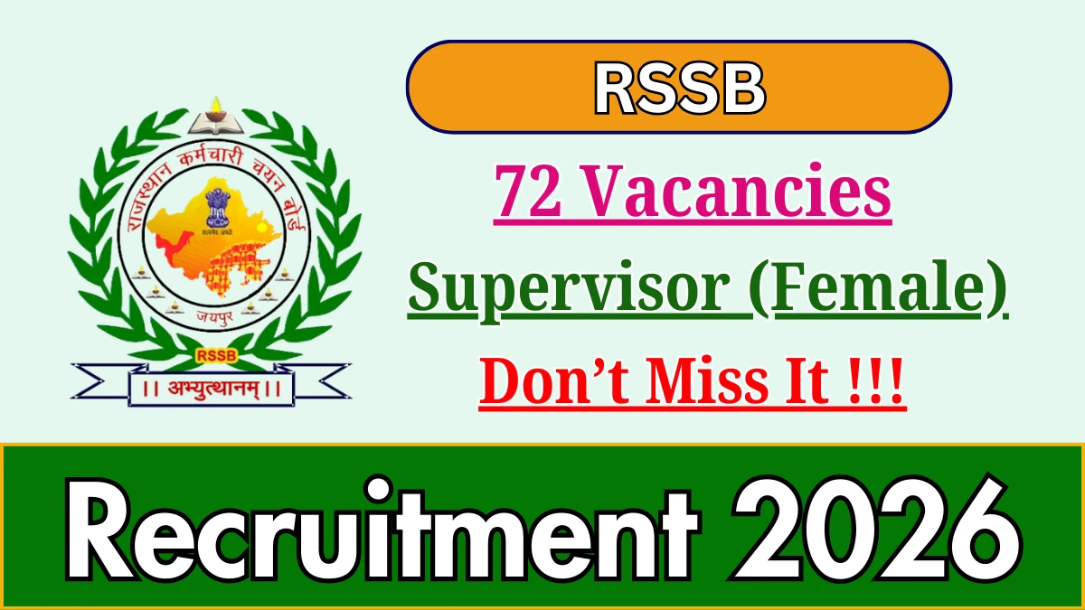 The Rajasthan Staff Selection Board (RSSB) Recruitment 2026 for posts of 72 Supervisor. Candidates with Any Graduate Can Apply Online. The online application opens on 06-01-2026, and closes on 05-02-2026. The candidate shall apply online through RSSB website, rssb.rajasthan.gov.in.
