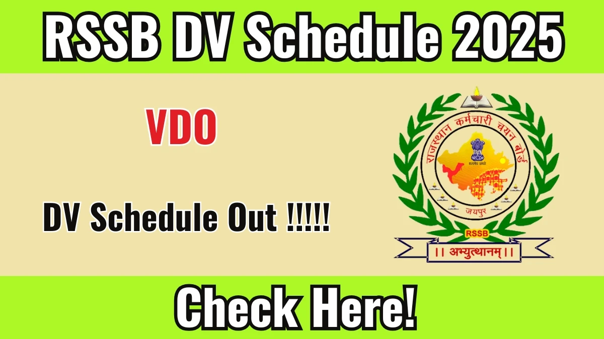 RSSB DV Schedule 2025: The Rajasthan Staff Selection Board has officially released the Document Verification (DV) schedule for the Village Development Officer recruitment 2025. Candidates who have been shortlisted for document verification can check the complete DV schedule, reporting time, venue details, and required documents list below. The document verification process is scheduled to begin from 2nd January 2026.