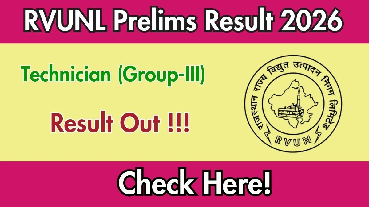 Related Keywords: RVUNL Technician Prelims Result 2026, RVUNL Group-III Result, energy.rajasthan.gov.in Result, RVUNL Technician Merit List 2026, RVUNL Prelims Scorecard Download, Rajasthan Technician Result 2026, RVUNL Mains Call Letter