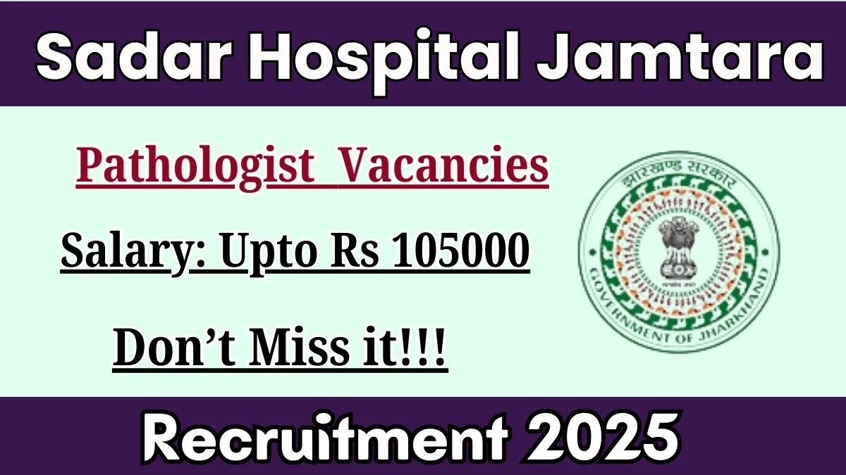 The Sadar Hospital Jamtara Recruitment 2025 for posts of 01 Pathologist. Candidates with MS/MD Can Apply Offline. The Offline application opens on 29-12-2025, and closes on 15-01-2026. The candidate shall apply Offline through Sadar Hospital Jamtara website, jamtara.nic.in.