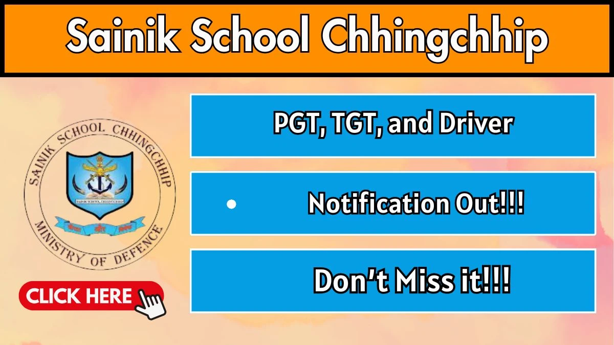 The Sainik School Chhingchhip Recruitment 2026 Notification has been released for the posts of PGT, TGT, and Driver. A total of 11 vacancies have been announced under this recruitment for teaching and non-teaching positions.